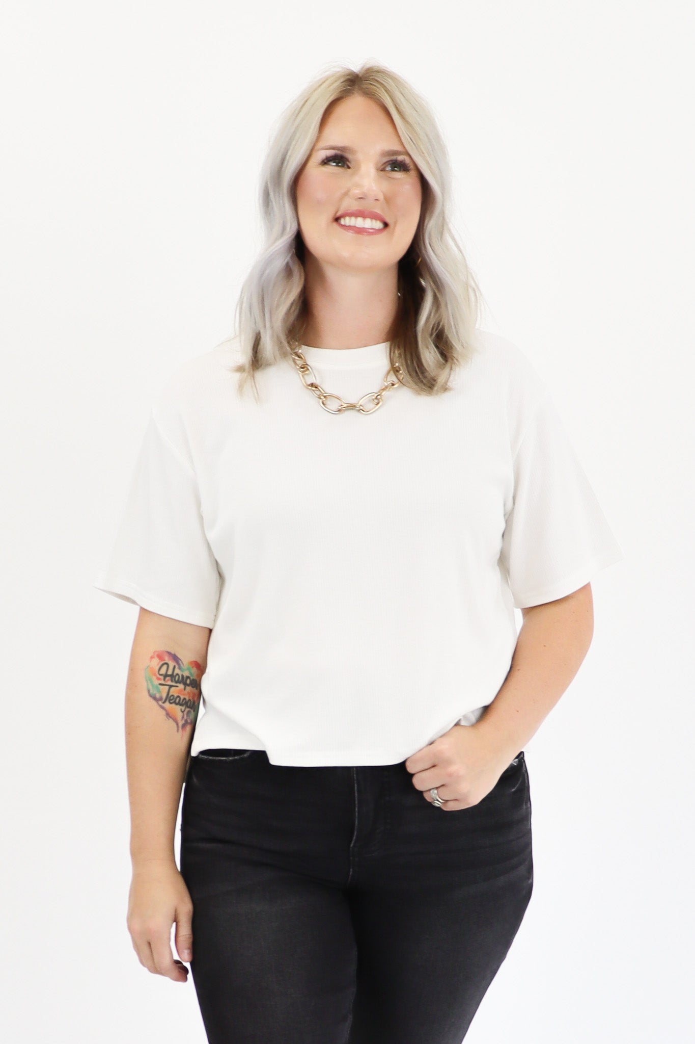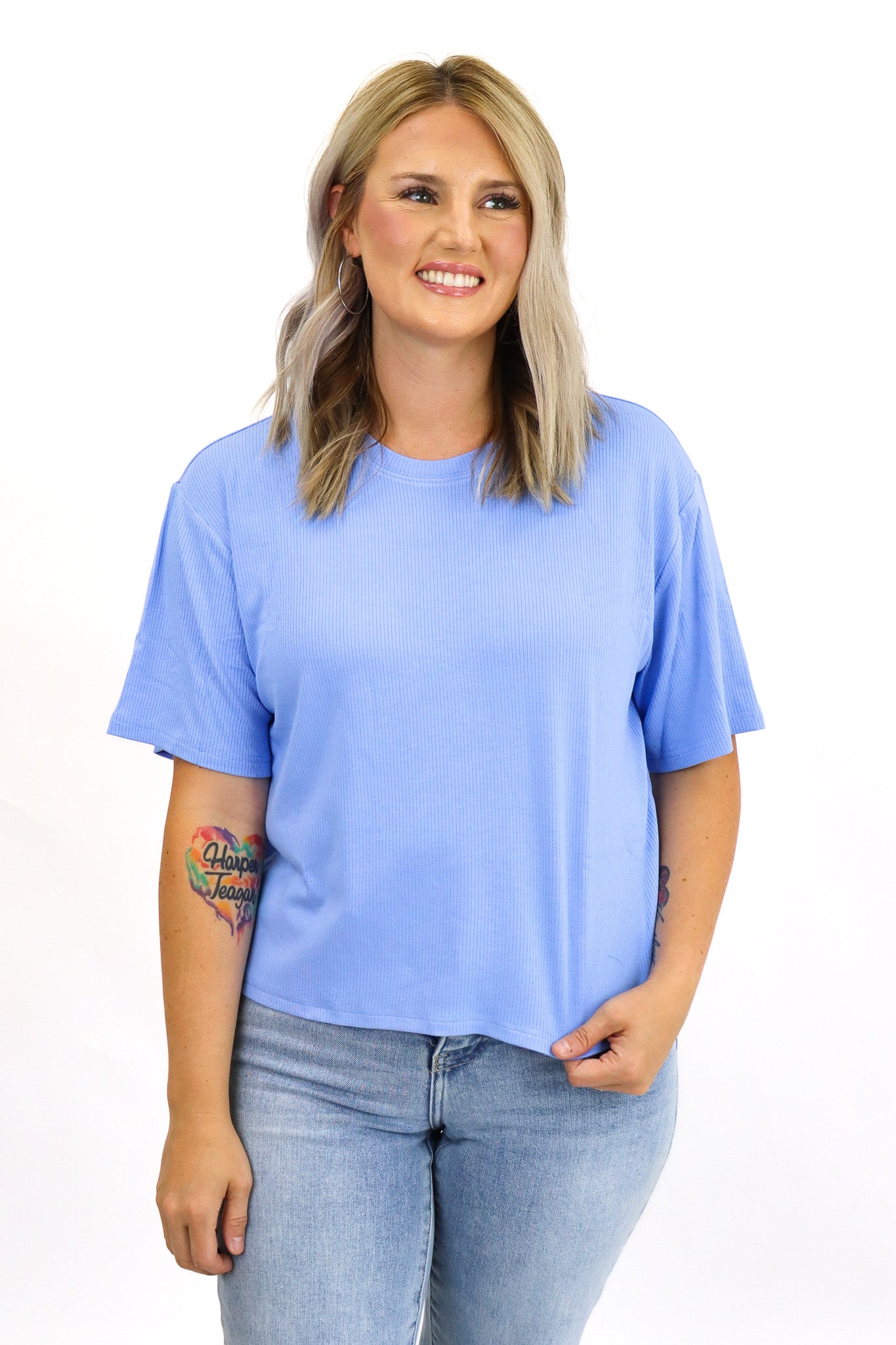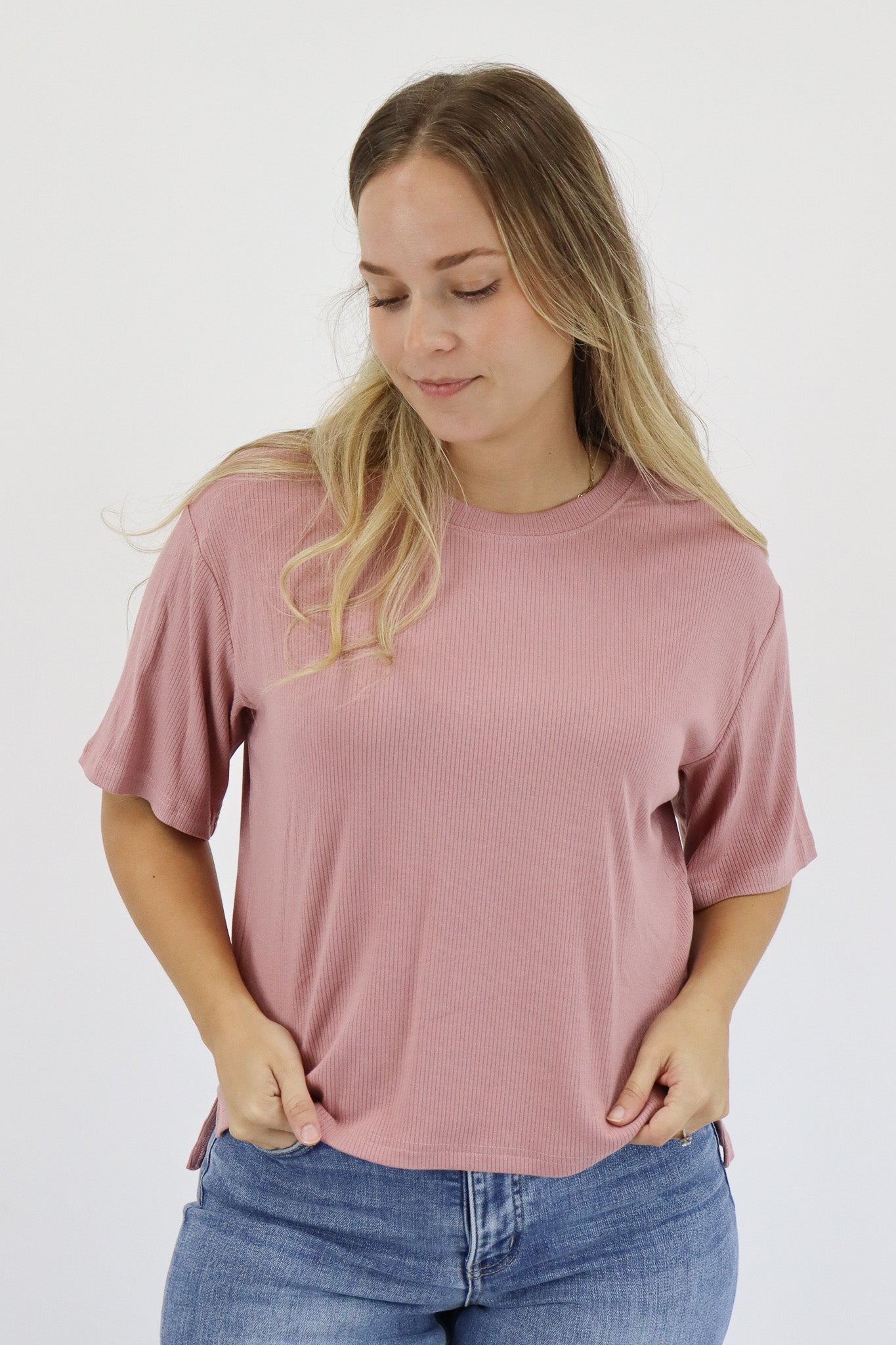 Best. Material. Ever. Stretchy, not clingy, surprisingly heavier weight, and ribbed. This color is perfect for fall and I bought the matching everyday lounge pants to have a cute ‘lil set and I’m obsessed. I own this shirt (and the longer version) in several colors and it’s a favorite in my closet. I am a true m/l in tops, 10/12 in jeans, 36DD bust and this fits perfectly relaxed as intended in the m/l on me.