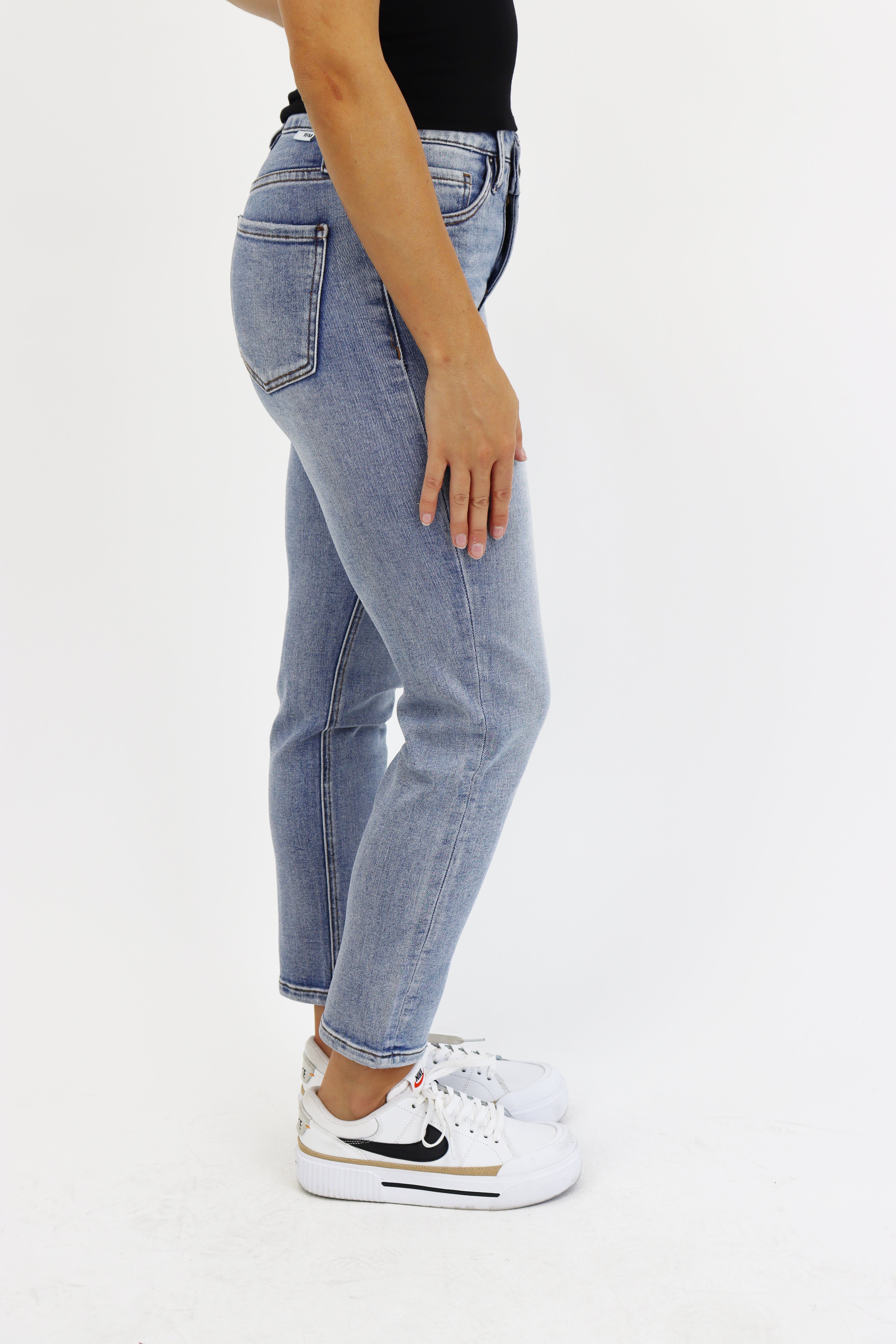 Your new favorite denim just dropped — meet the Ankle Crop Cross Button Slim Straight, the jeans that look amazing, feel incredible, and give you all-day confidence. Crafted with high-quality stretch denim and slimming tummy control panels, these jeans smooth your lower belly area while keeping you comfortable from morning to night. The unique cross button closure adds a modern twist to a timeless style.
