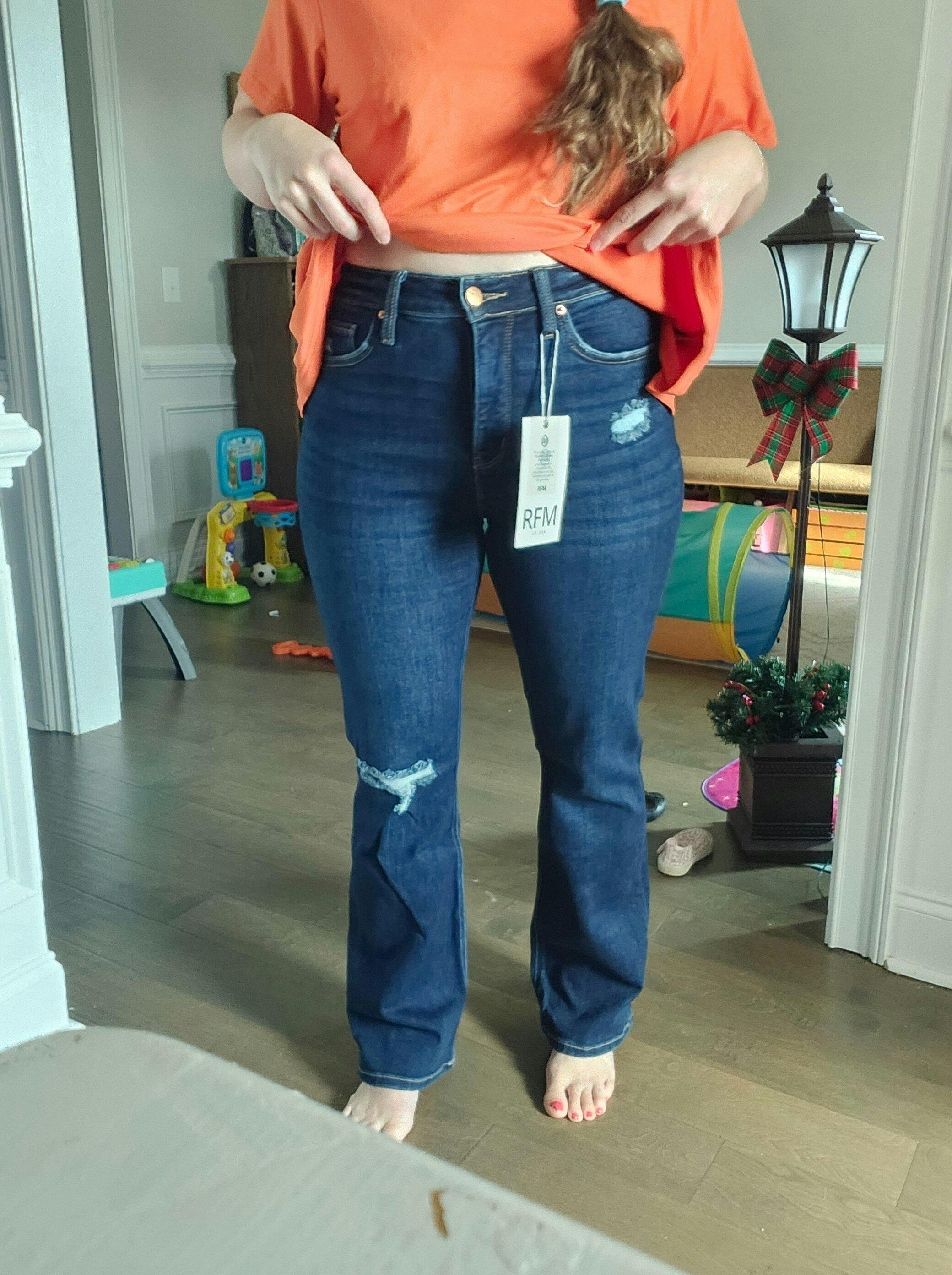 The RFM jeans are your going to be your new denim obsession. Crafted from thick, high-quality stretch denim with built-in tummy control panels, they smooth and support your midsection while keeping you comfortable all day. The fit is flattering, the fabric is premium, and the quality is unmatched.